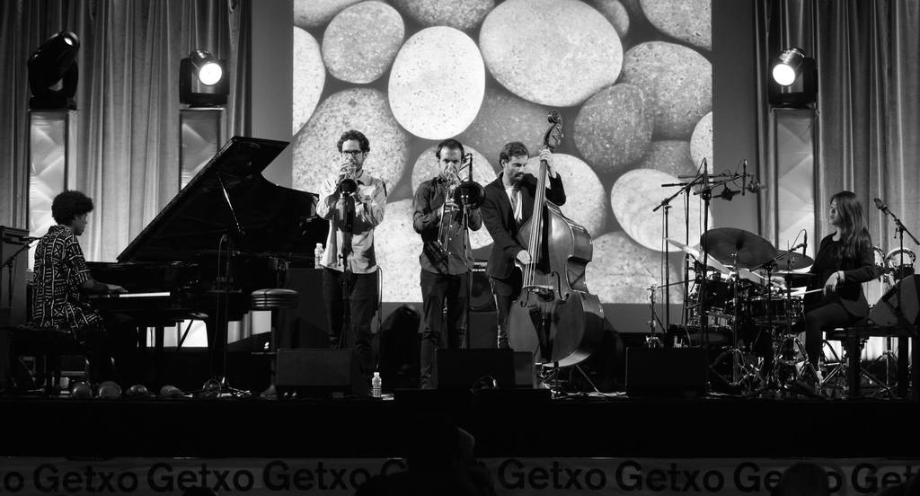 Se presenta en el concurso de grupos el quinteto de Daadoud Salim, de apellido ilustre, no en vano es hijo del que fuera saxofonista del trío de Lou Benett. Recuerdo conciertos del estrafalario saxofonista que me hicieron vibrar, tal como hizo anoche su hijo, muy bien acomapañado por Bruno Calvo, excelente trompetista, Pablo Martínez, tremendo con el trombón, el solvente bajista Hendrik Müller y la impecable e implacable baterista Sunmi Hong. Aunque a estas horas ya sé que han ganado el concurso de grupos, tanto el del público, premio Juan Claudio Cifuentes, nuestro añorado Cifu, y el del jurado y que el propio Daadaoud ha recibido el de mejor solista, al empezar el concierto ya nos dimos cuenta todos de que estos chicos ya juegan en la división de los mayores. El público se entregó al concierto más creativo que escuchamos en las primeras partes de las noches de Biotz Alai. Habrá que seguirlos a todos de cerca. Enhorabuena a Daadaoud y a los suyos.